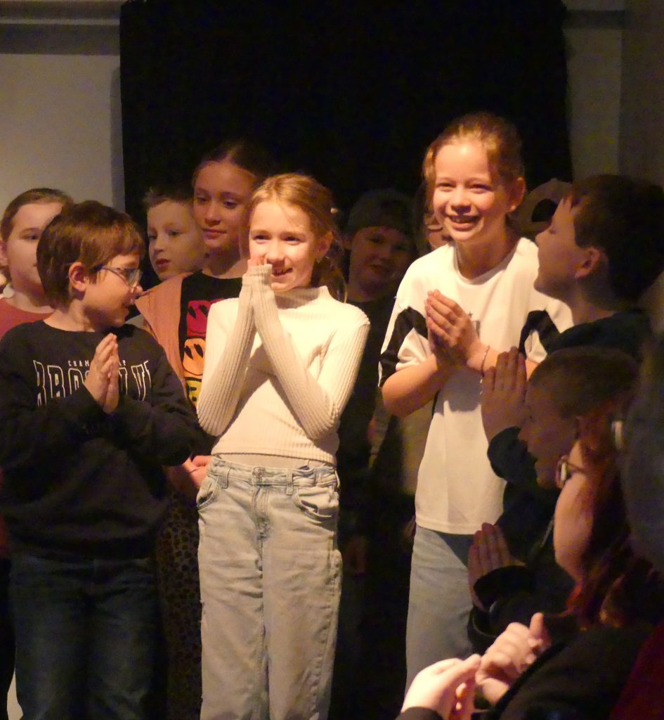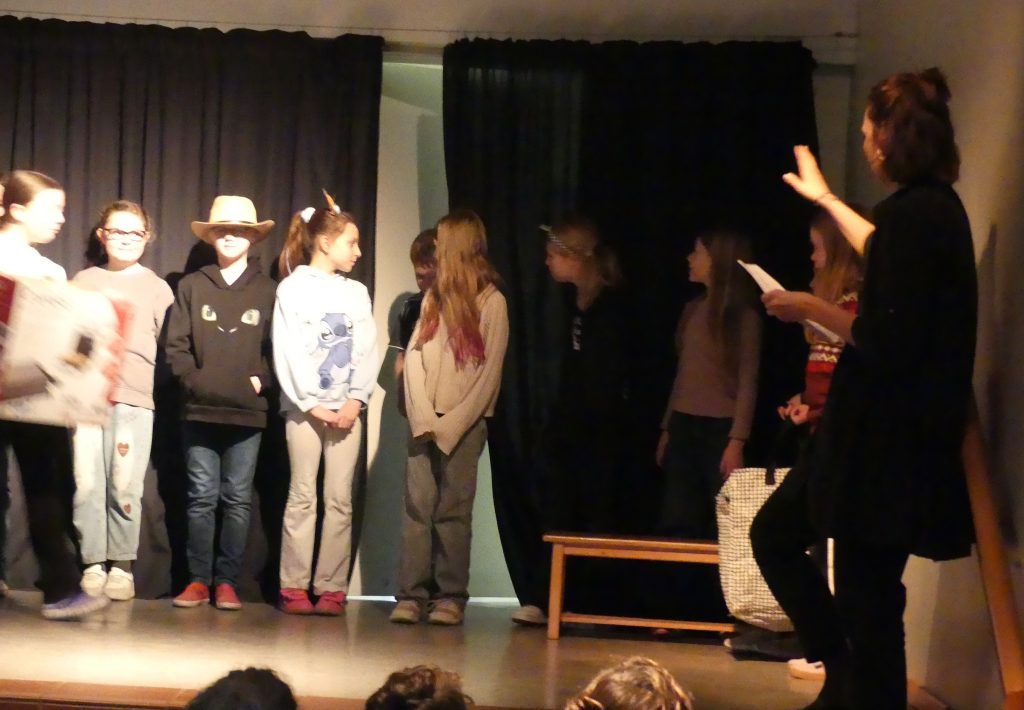 Traditionell ging es für uns auch dieses Jahr vom Berg runter zum Bürgerhaus – das Quasi So Theater führte auf! Dieses Jahr handelte es sich bei ihrem Kinderstück zu Weihnachten um Michael Endes „Wunschpunsch“, auf den wir schon ganz gespannt waren. Einige Kinder hatten der Originallektüre schon am Vorlesetag lauschen können und freuten sich daher umso mehr auf die Umsetzung auf der Bühne: