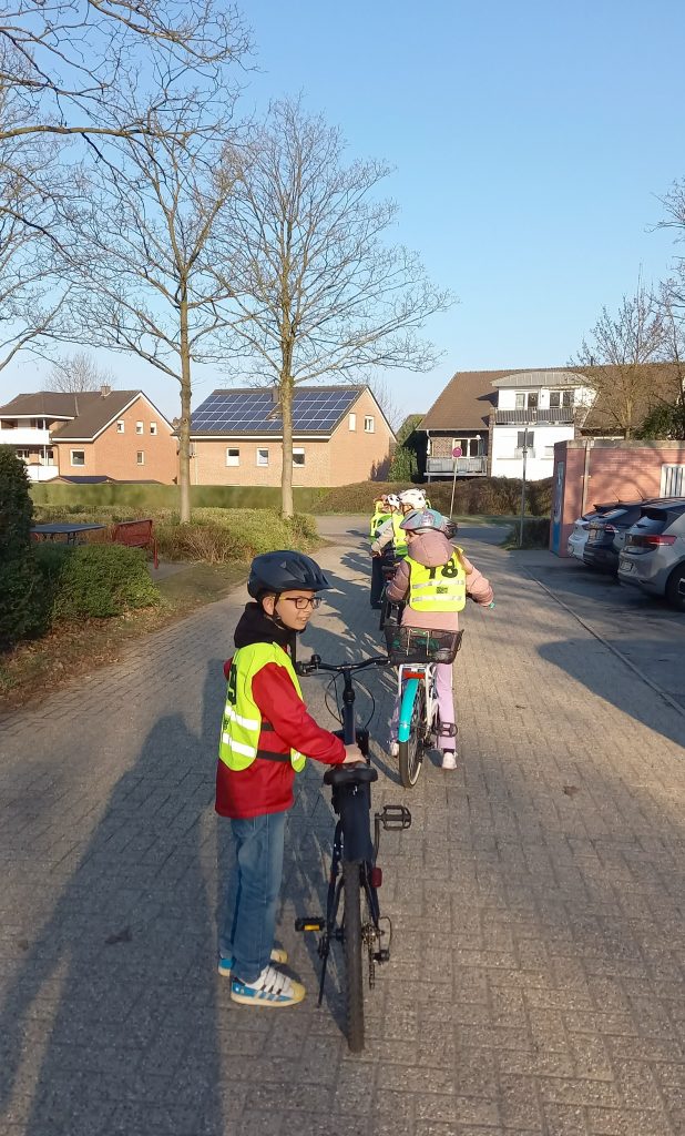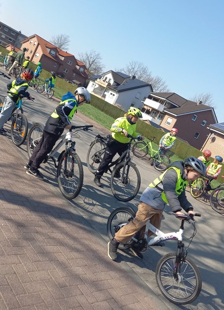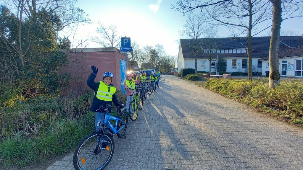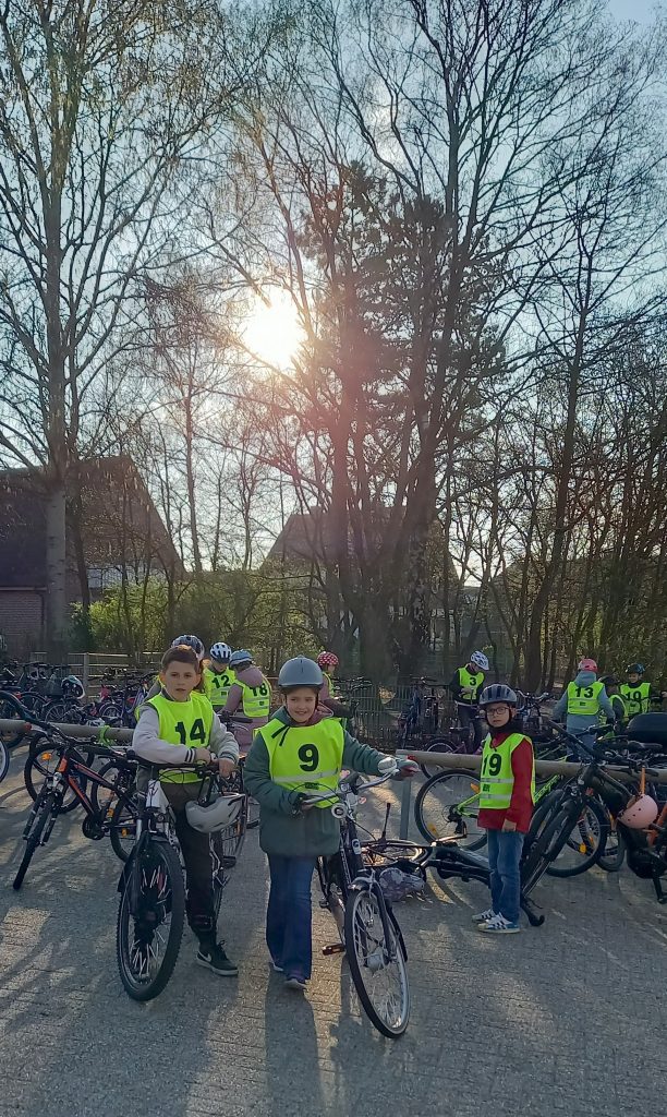 Fleißig geübt hatten unsere Viertklässler mit ihrer Sachunterrichtslehrerin Frau Eversmeyer. Gut gelaunt unterliefen sie am 19. und 20. März das intensive Training und übten mit unseren engagierten Elternhelfern und unserer Verkehrspolizistin Frau Lindmeyer die wichtigen Punkte auf der Radfahrstrecke einzuhalten und durchzuführen.